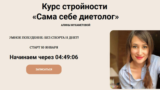 Курс Сама себе диетолог. Тариф Стандарт, автор Алина Мухаметова. УМНОЕ ПОХУДЕНИЕ: БЕЗ СПОРТА И ДИЕТ!