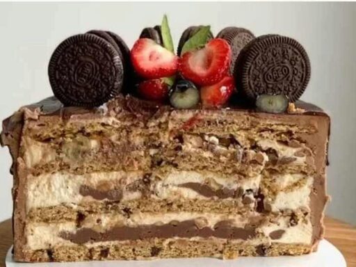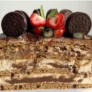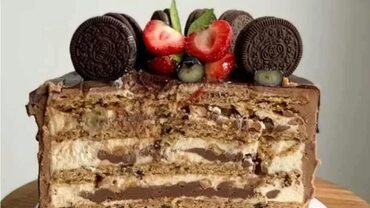 Торт «Cookies» - это вкусная начинка «Капитан Кукис» и ее ягодная интерпретация, ганаш для покрытия и техника выравнивания, современный декор из вафельной бумаги. Торт «Капитан Кукис»: Классический Cookies. Коржи печенье с шоколадной крошкой, арахисовый ганаш, сливочная карамель и карамельный крем