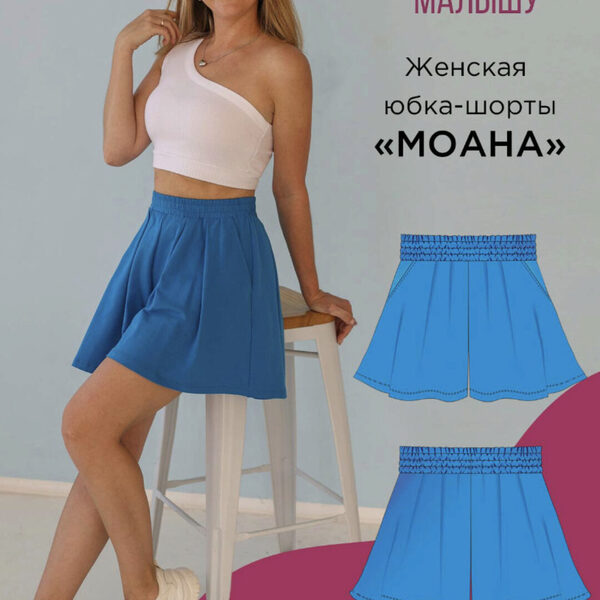 Курс Мама шила малышу - Юбка-шорты Моана. Размер 40-54. Рост 170, автор Алина Шаймуратова. Женская юбка-шорты «Моана» - несомненный летний хит летнего гардероба, ведь эта модель сочетает в себе лучшие качества: красота и игривость юбки, удобство и практичность шортов.