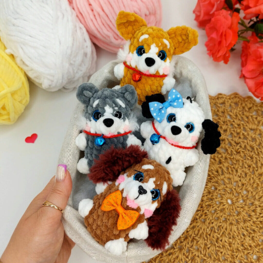 Ростиком 12 см, с учётом хвостиком 17 см. ПРИШИВАТЬ НИЧЕГО НЕ НУЖНО! В мк входит описание 7 игрушек + корзиночка Лисичка, Доберман, Овчарка, Хася, Коржик, Енотик, Котик