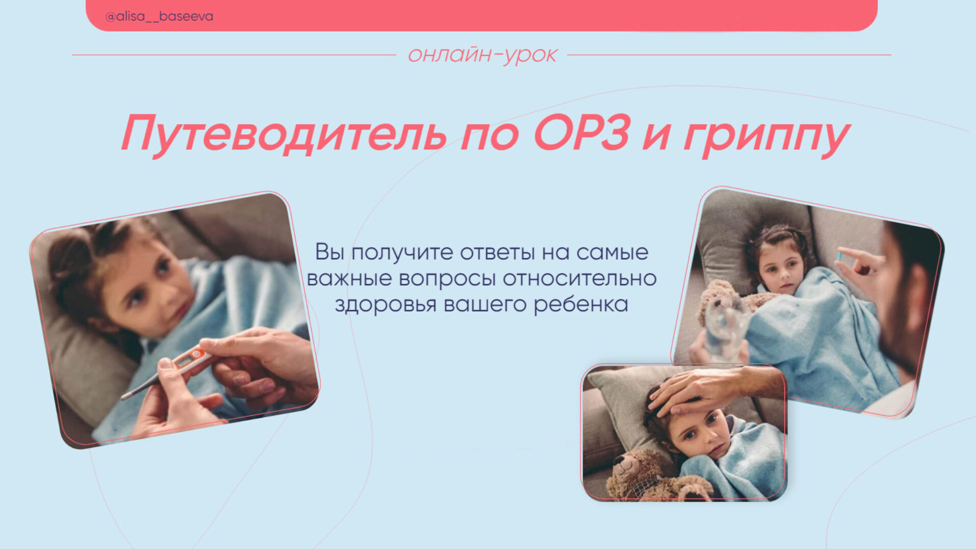 Курс Путеводитель по ОРЗ и гриппу, автор Алиса Басеева. Вы получите ответы на самые важные вопросы относительно здоровья вашего ребенка