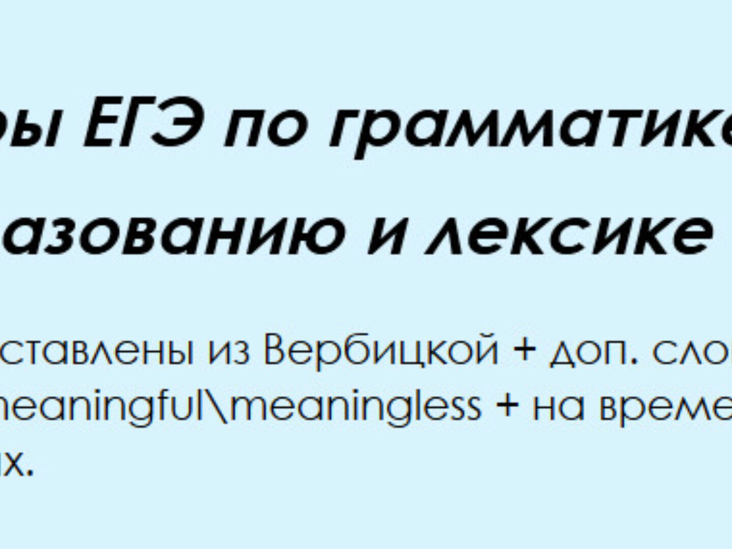 9+7+14 наборов с дополнительной проработкой. По Вербицкой Варианты 1-20 и лексика из разных пособий.