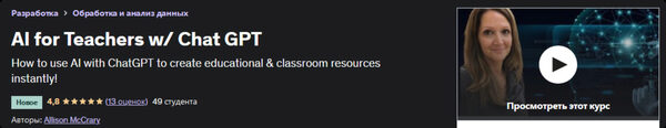 Allison McCrary «Нейросети в работе учителя / Chat GPT» — Udemy слив скачать