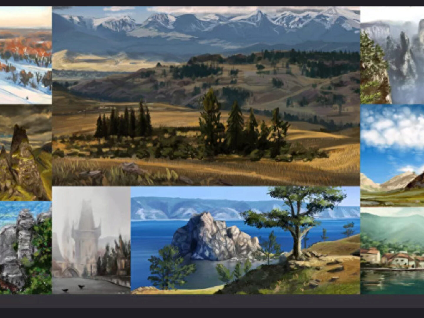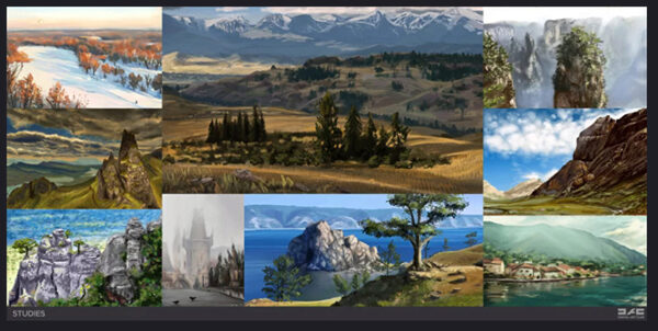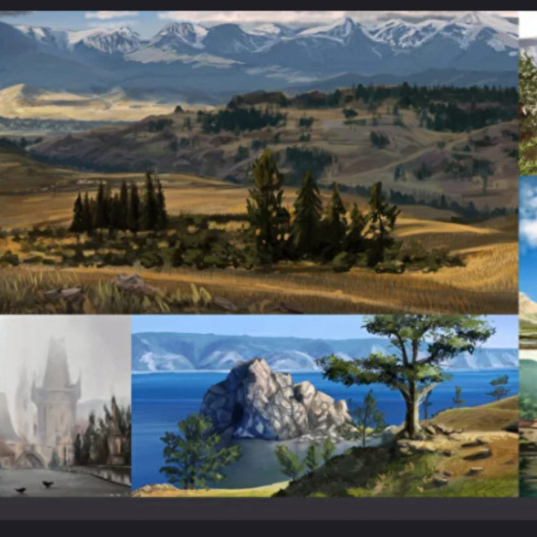 5 уроков, отведенных на знакомство c различными пейзажными техниками. Поработаете c планами, палитрами, создадите собственную фентезийную локацию.