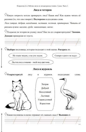 Алёна Попрыгина «Рабочие листы по литературному чтению 2-4 класс.» слив скачать