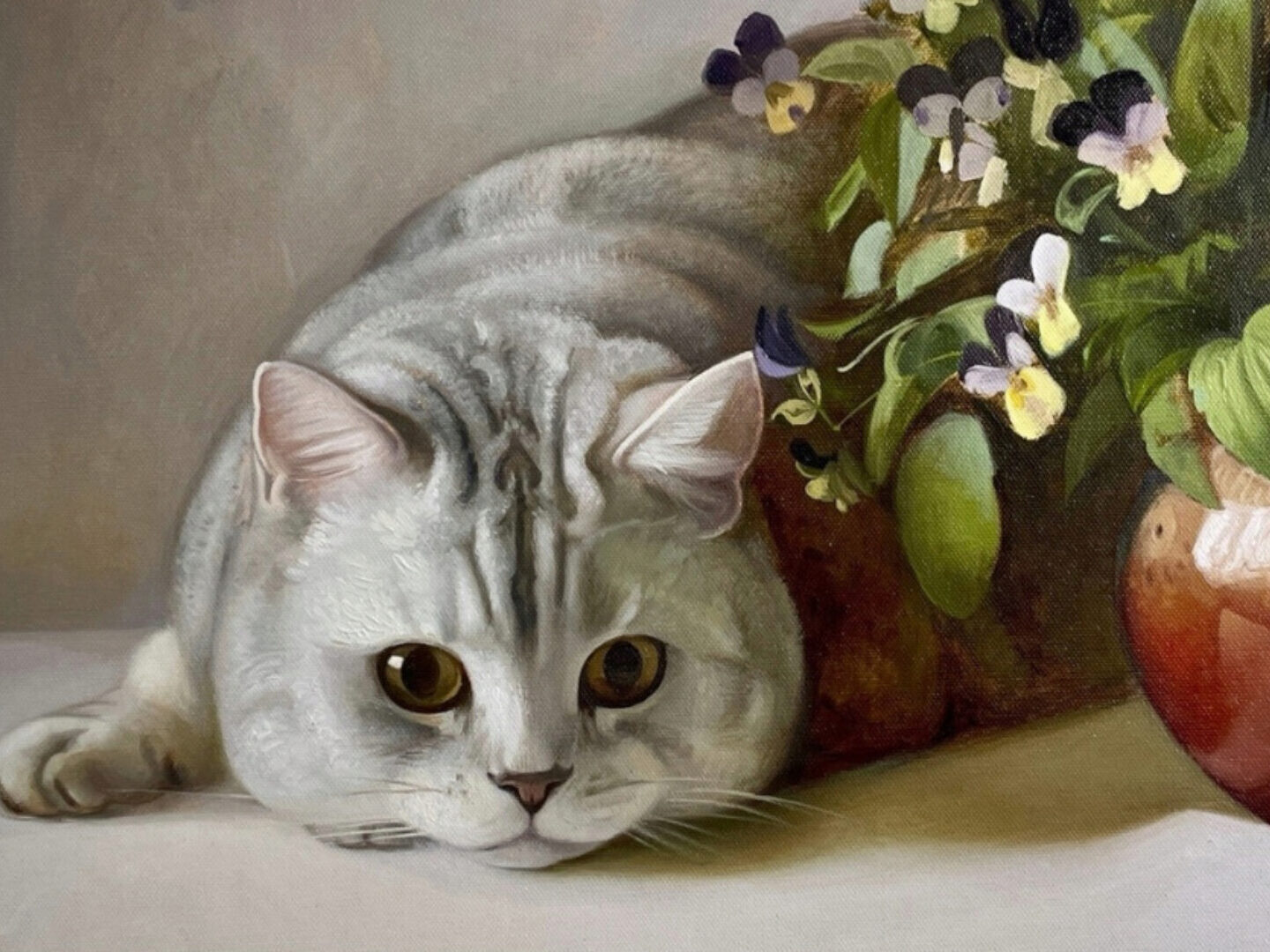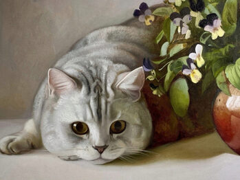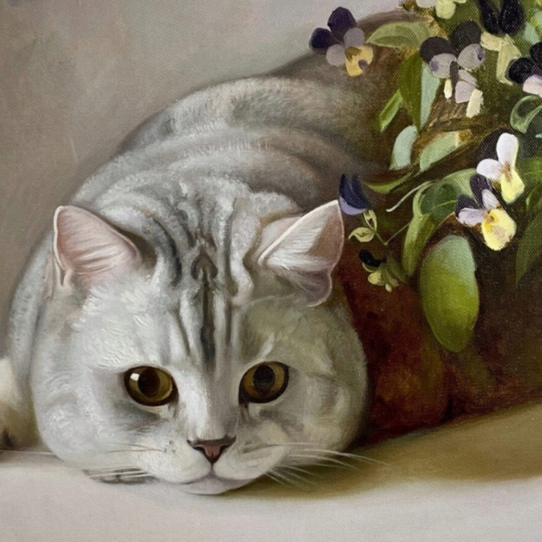 Курс написан в классической технике письма. И он подходит тем кто хочет научиться смешивать краски на палитре и подбирать максимально подходящий цвет. Мы так же будем писать по тонированному холсту, делать рисунок масляной пастелью и потом уже писать в цвете. Иногда мы будем использовать технику «импасто», рельефное письмо имитирующее ворсинки шерсти кота.