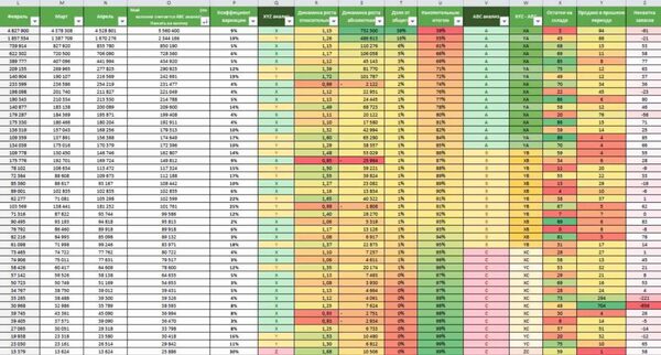 Получите готовый инструмент для проведения анализа товарного ассортимента в один клик в таблице Excel. Все формулы в таблице открыты, поэтому вы можете всегда подстроить таблицу под себя (расширить или убрать лишние элементы).