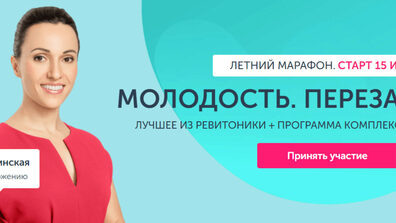 Приглашаем всех на 20-й сезон марафона «Молодость. Перезагрузка» 2.0. Мы проанализировали опыт, учли ваши пожелания и обновили программу. Теперь это оптимальное сочетание из лучших приемов Ревитоники для омоложения лица, разноплановых физических нагрузок для всего тела и рекомендации по правильному