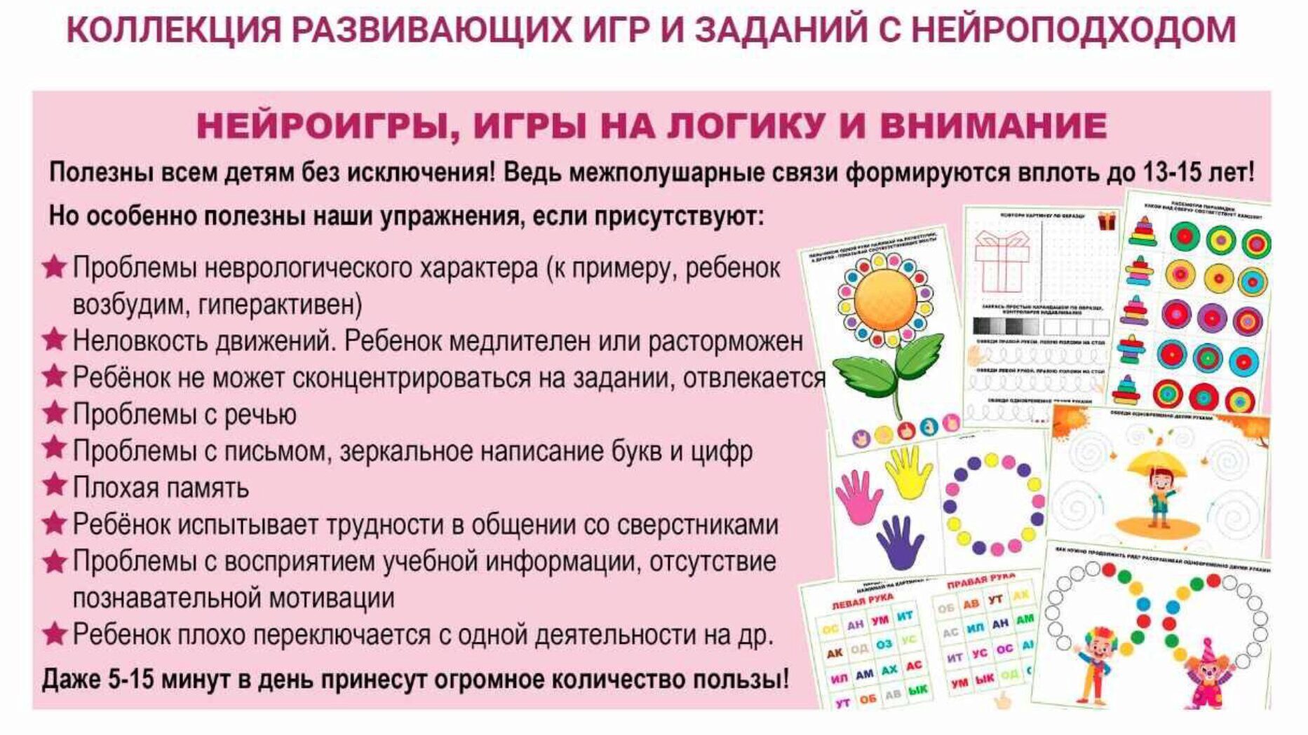 Авторский курс нейроупражнений Нейро упражнения, как волшебная палочка Они помогают развить: Память Речь Внимание Снижают утомляемость Повышают способность к обучению Нейрогимнастика для детей Комплекс упражнений, который направлен на развитие центров головного мозга, сбалансированное