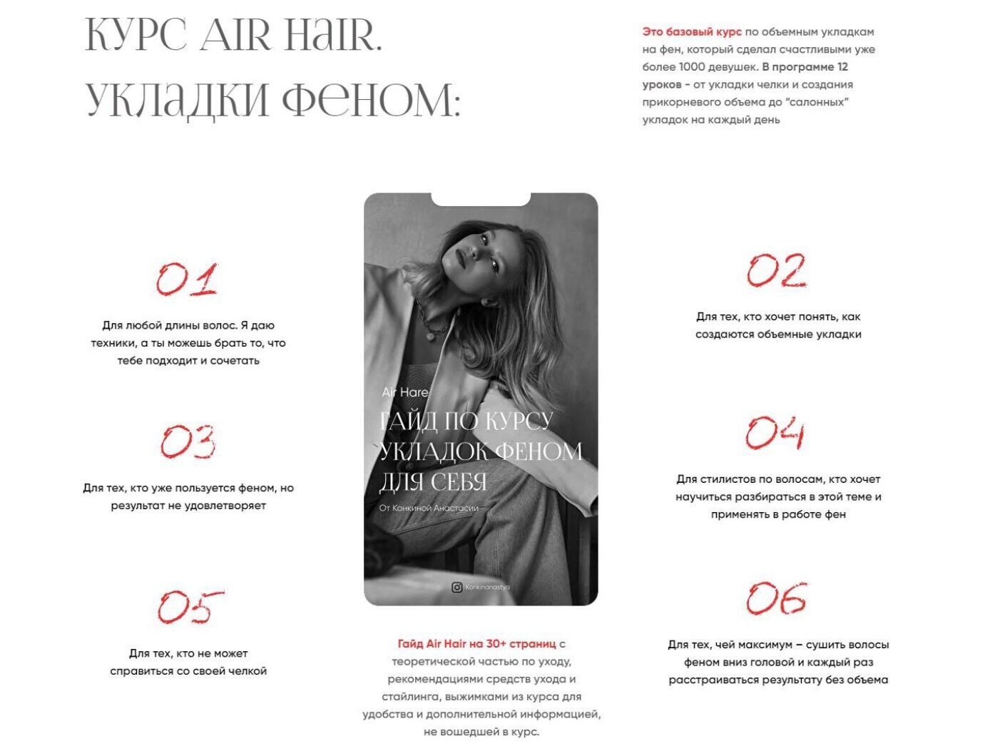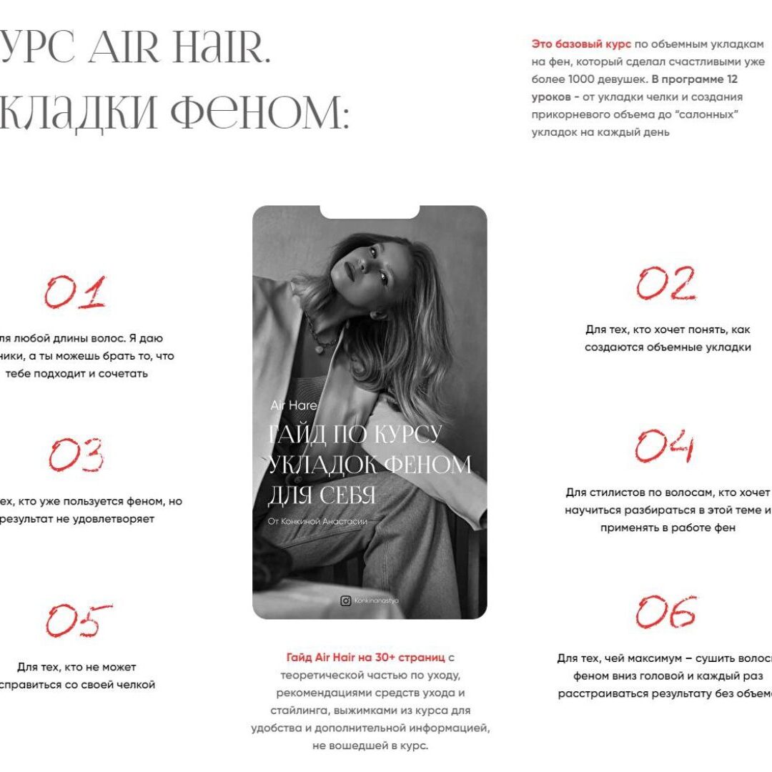 Анастасия Конкина «Air Hair. Курс по салонным укладкам феном в домашних условиях. Тариф база» слив скачать
