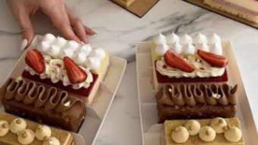 - Клубничный йогурт. Бисквит Джоконда, яркое и сочное клубничное конфи, нежнейший клубничный крем, воздушный йогуртовый мусс, ванильный ганаш