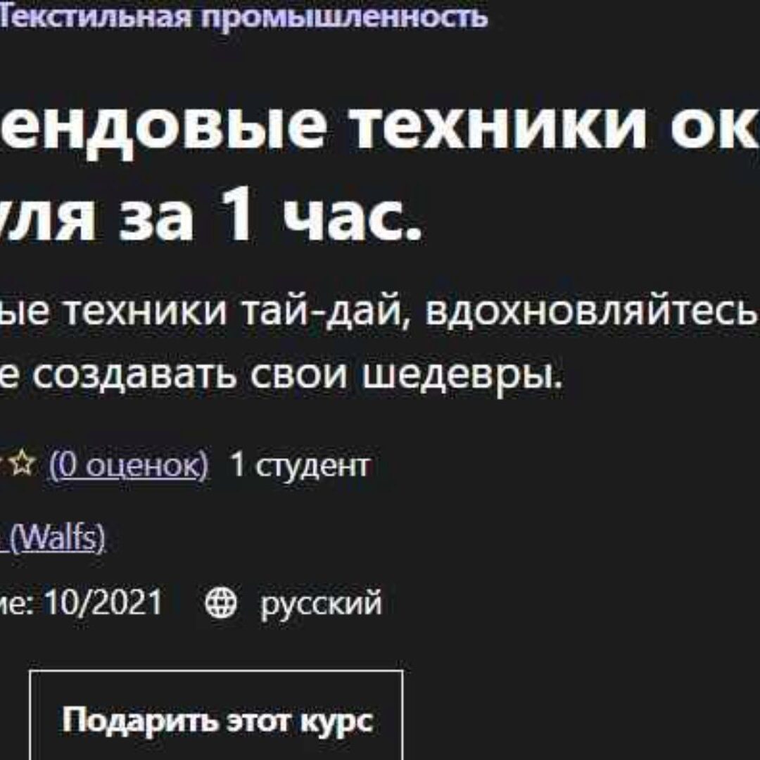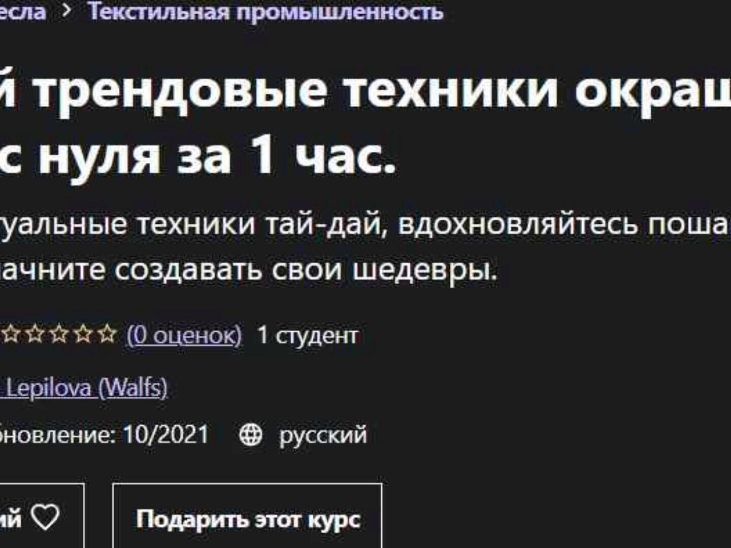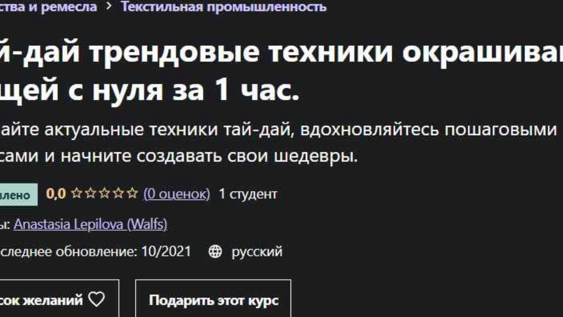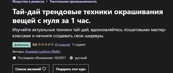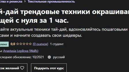Отзывы о курсе [Udemy] Тай-дай трендовые техники окрашивания вещей с нуля за 1 час (Анастасия Лепилова (Walfs))