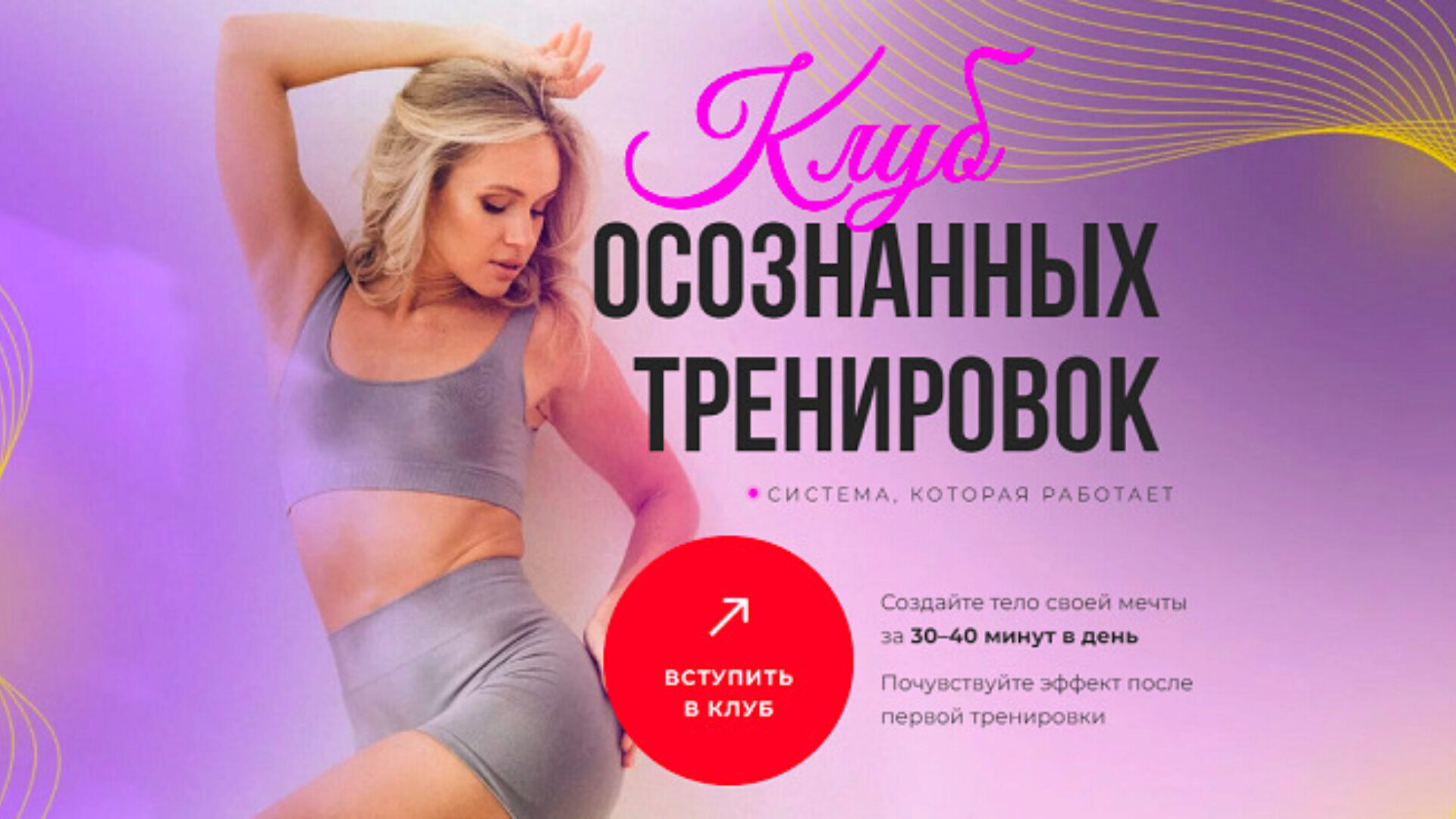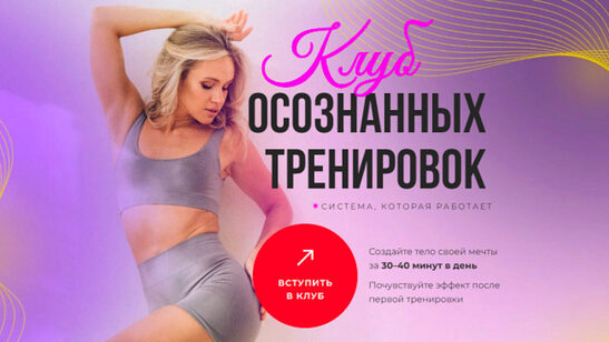 Внимание! Тренировки в клубе среднего и продвинутого уровня! Система, которая дает результаты Создайте тело своей мечты. Стройное и здоровое тело за 40 минут в день. Клуб Осознанных Тренировок это фитнес-клуб у вас дома, в котором никогда не скучно. 1000 человек ежедневно тренируется вместе.
