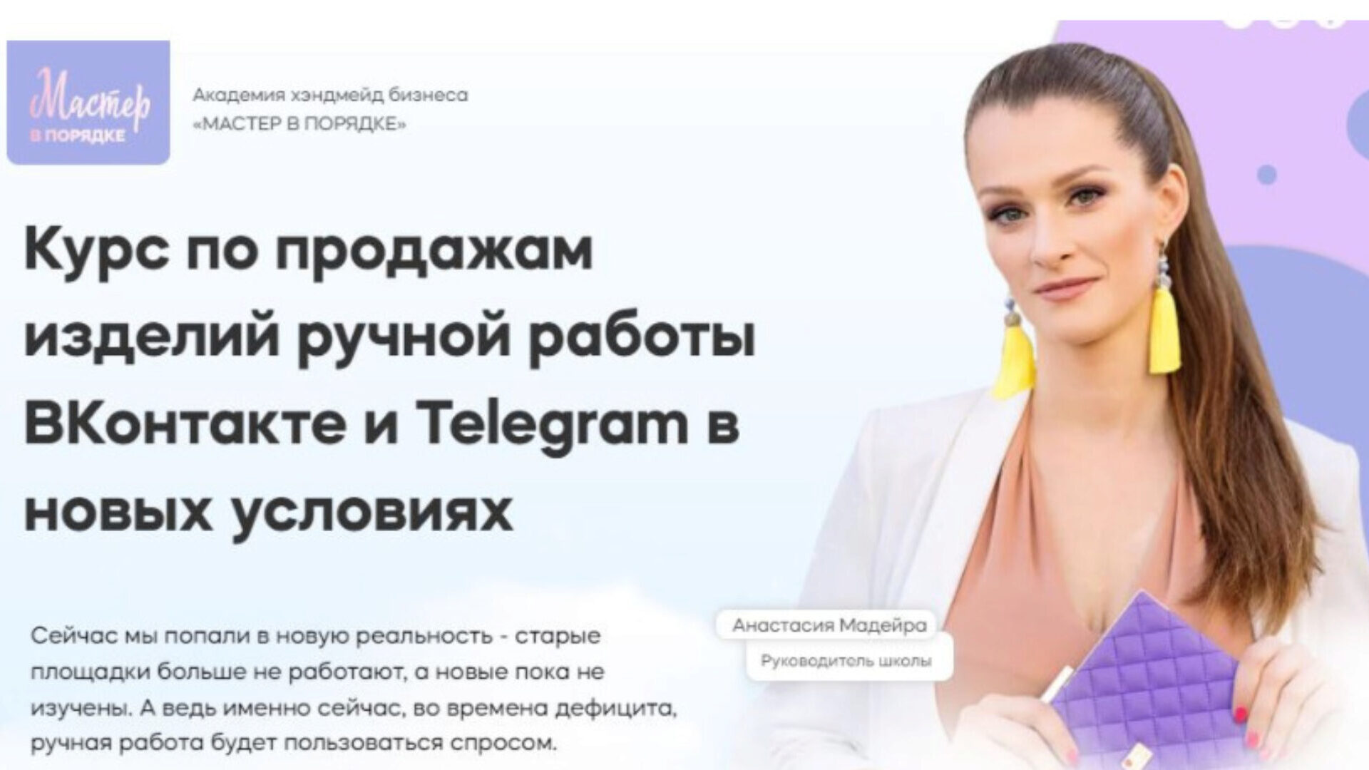 Анастасия Мадейра «Курс по продажам изделий ручной работы ВКонтакте и Telegram в новых условиях» слив скачать