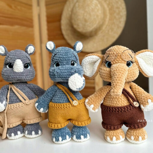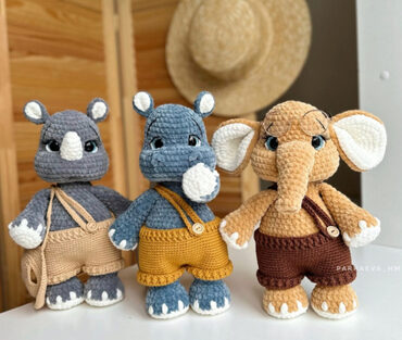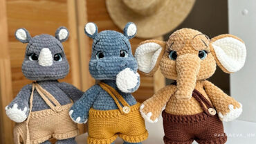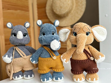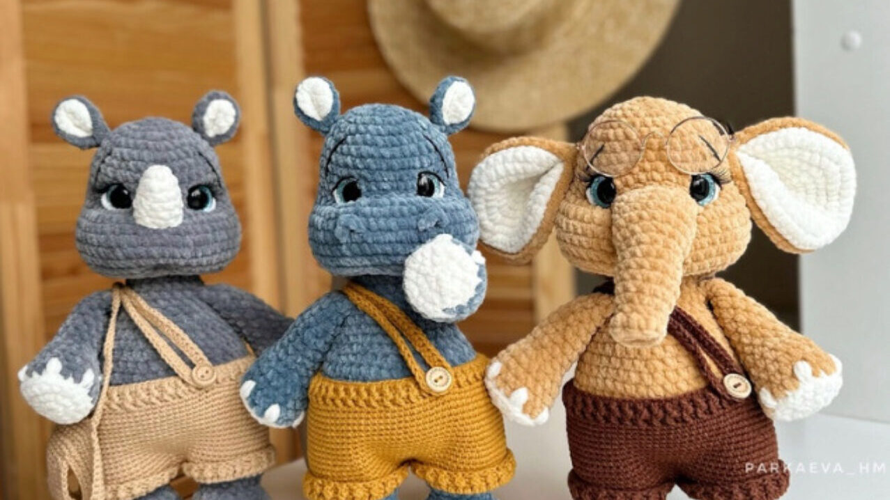 Курс Малыши из Африки, автор Анастасия Паркаева. Мк будет содержать описание на три игрушки: бегемотик, слонёнок и носорог!