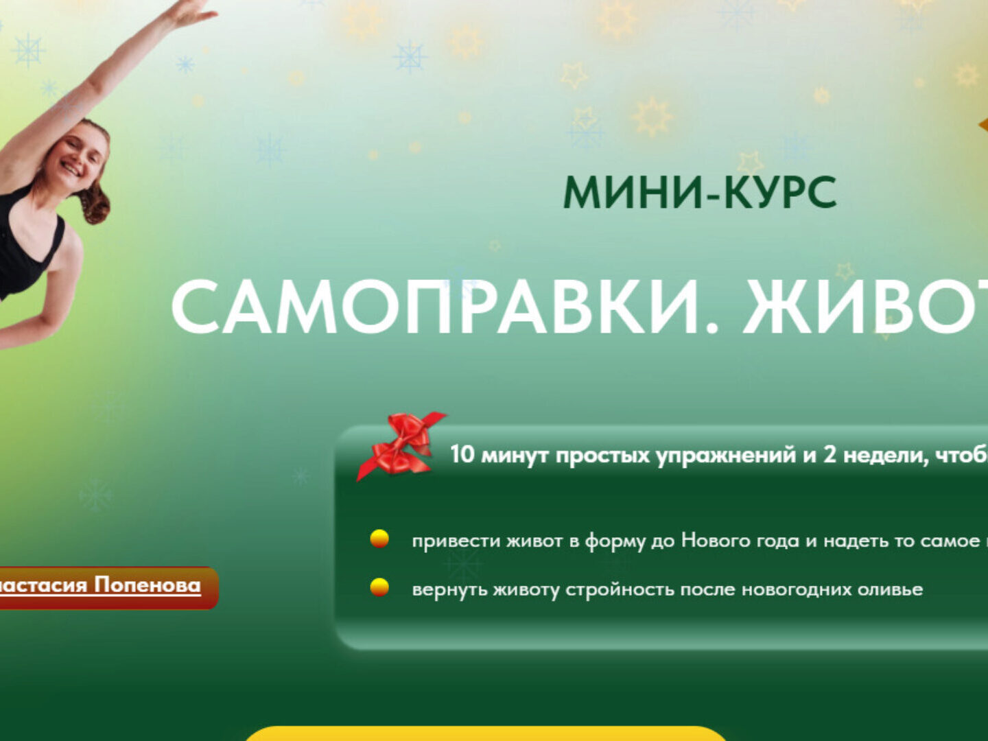 Курс Самоправки. Животики. Тариф Просто подтянуть живот, автор Анастасия Попенова. 10 минут простых упражнений и 2 недели, чтобы: