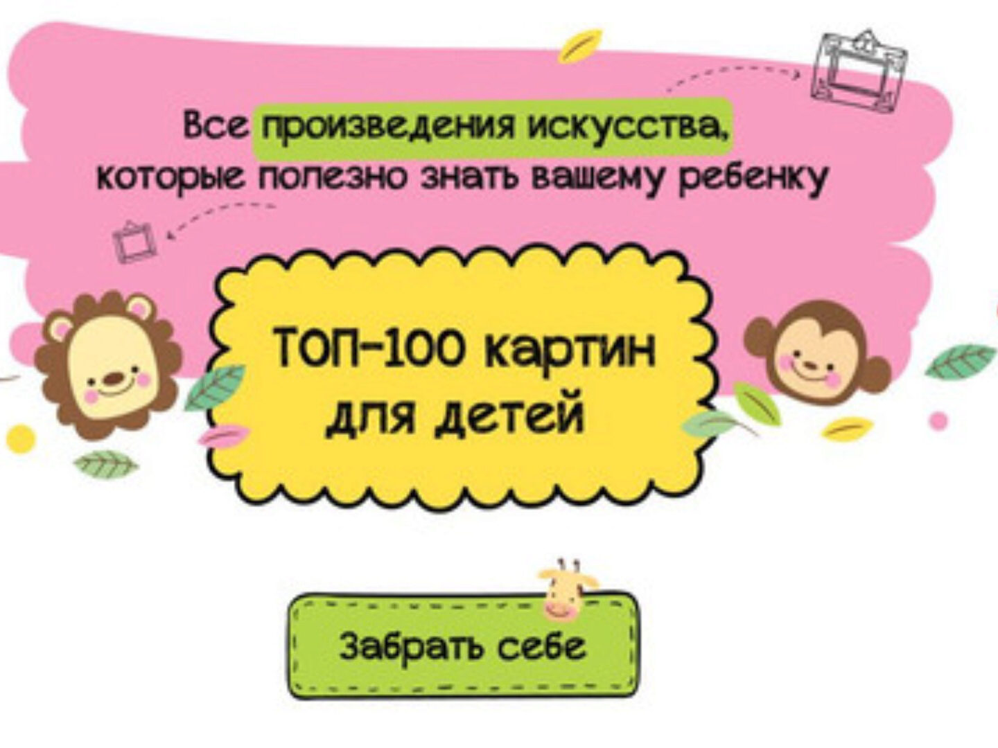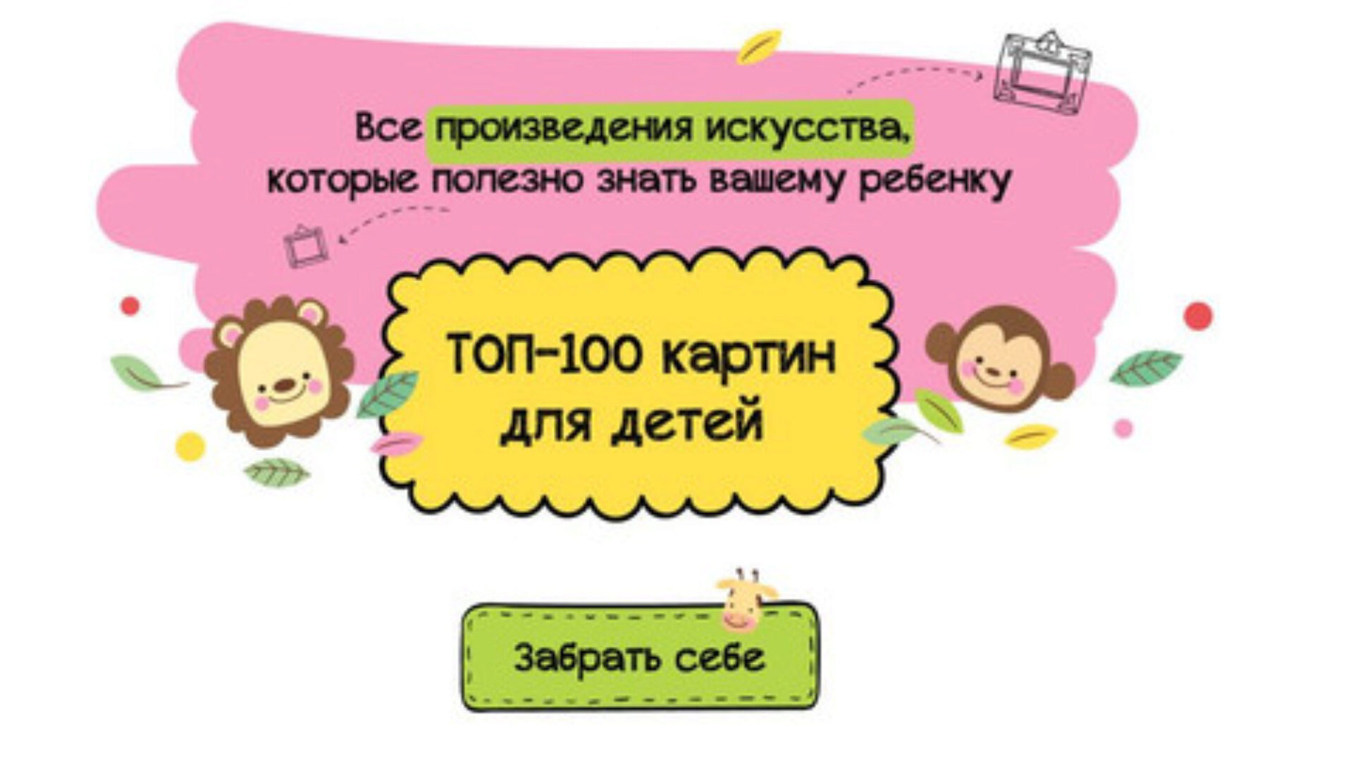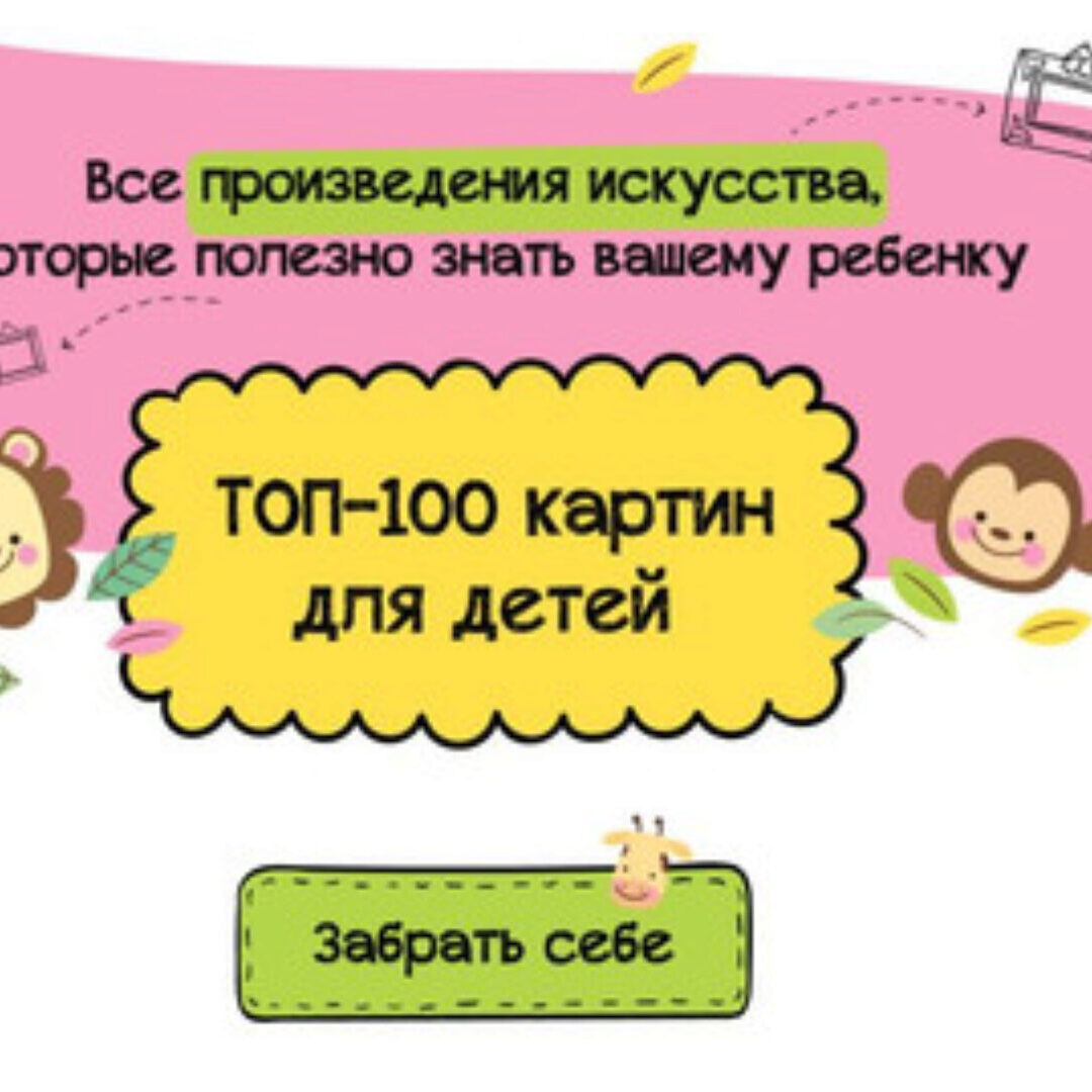 Да, Вы можете получить получить бесплатно фрагмент курса «Топ 100 картин для детей», просто напишите на почту или в телеграм