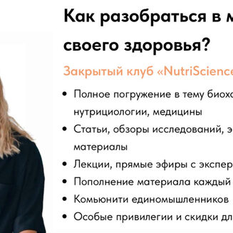 Отзывы о курсе «Закрытый клуб NutriScience Club. Как разобраться в механизмах своего здоровья? Тариф на 3 месяца» от Анастасии Родионовой
