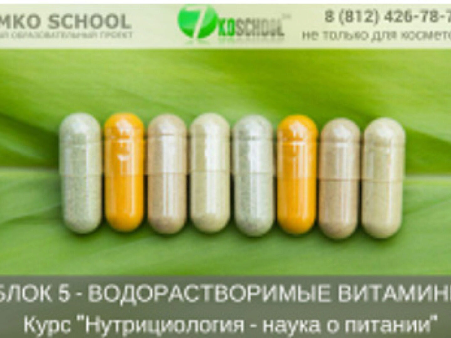 Курс 7koschool - Нутрициология - наука о питании. Блок 5 «Водорастворимые витамины», автор Анастасия Семко. В блоке будем разбирать:
