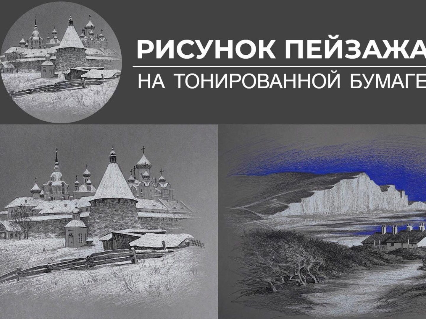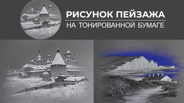 Как рисовать зимний пейзаж на тонированной бумаге 1 часть - 1ч 10м