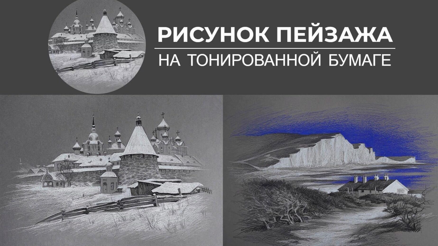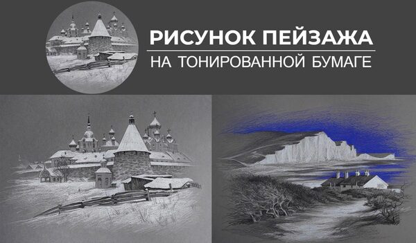 Покажу, как рисовать зимний пейзаж с заснеженными крышами. Последовательность работы с белым и черным карандашами.