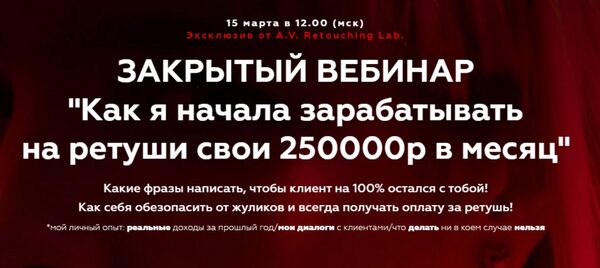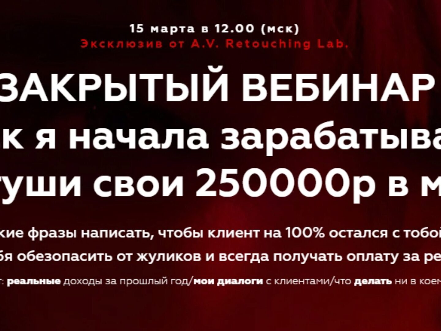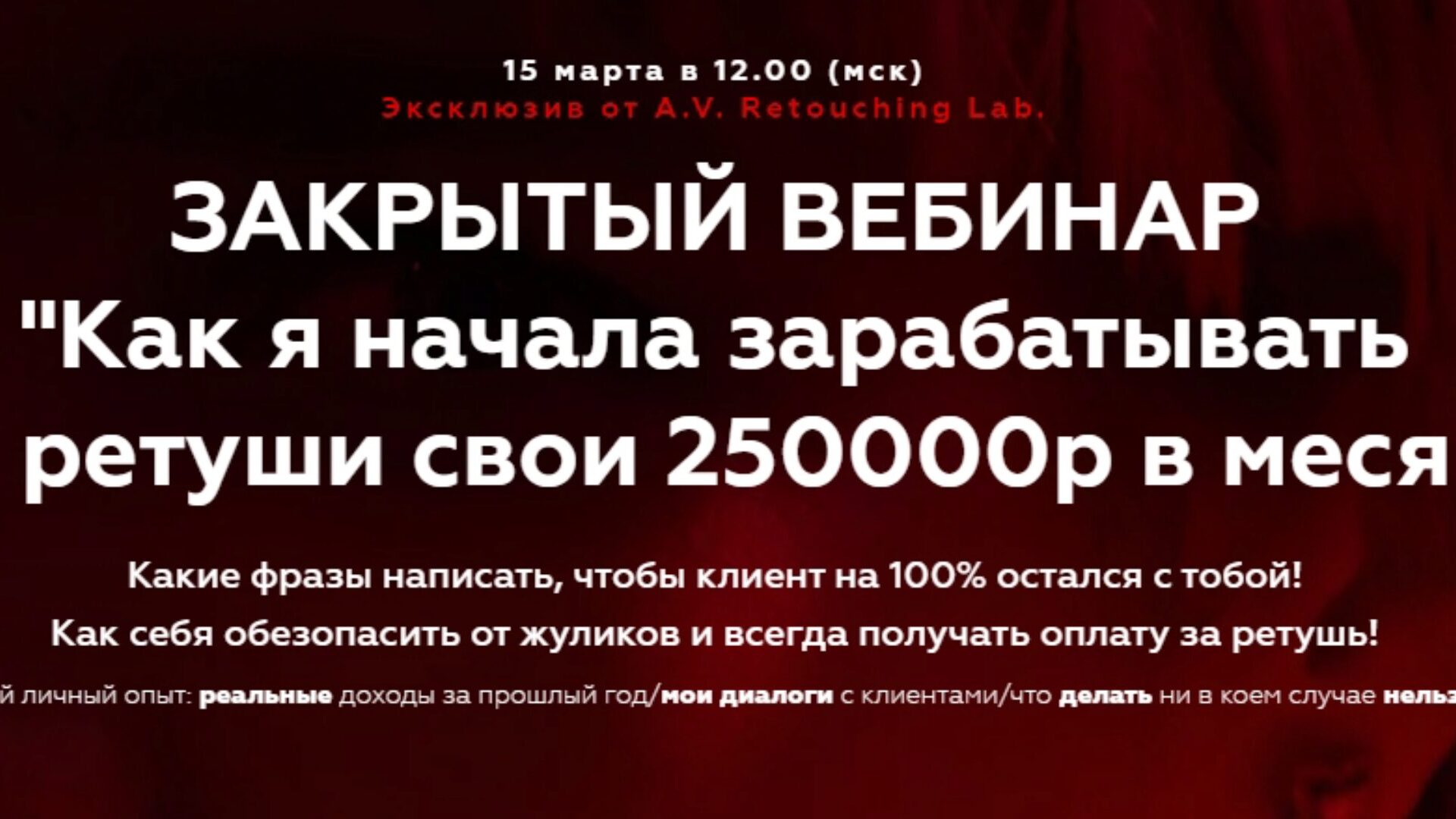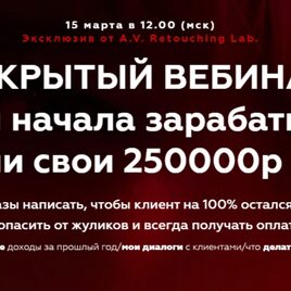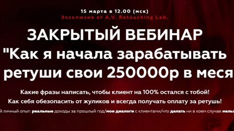 Курс AVRetouchingLab - Как я начала зарабатывать на ретуши свои 250000р в месяц, автор Анастасия Воронцова.