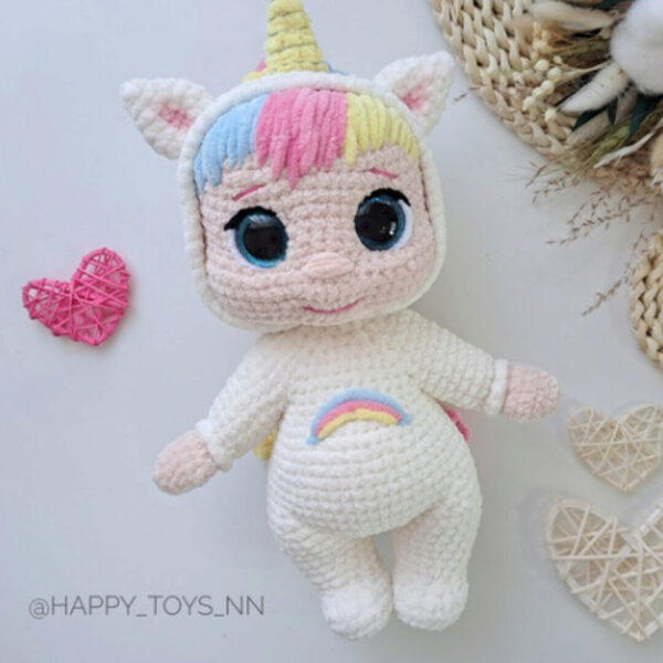 Мастер-класс «Малышка Единорожка» готов! . Связать можно практически из любой пряжи Если взять тонкий велюр или полухлопок, то получится малышка с ладошку Мастер-класс не сложный, поэтому подходит для начинающих мастериц. . МК в формате PDF состоит из: 12 страниц поэтапного создания игрушки; 22