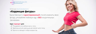 Online-курс Анатолия Донского «Коррекция фигуры» Единственный и гарантированный способ изменить свою фигуру, употребляя любимую еду и БЕЗ изнурительных тренировок. Курс подходит для: Похудения или набора массы тела; Увеличения или уменьшения любой части тела; Мужчин и женщин любых возрастов.