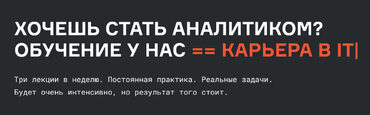 IT-индустрия меняется постоянно и быстро. Чем быстрее и напряжённее программа обучения, тем проще вам будет влиться в реальную работу и следовать за изменениями. Наша программа охватывает весь спектр Hard Skills, которые нужны на позиции аналитика. Для кого эта программа: - Старт карьеры. У вас нет