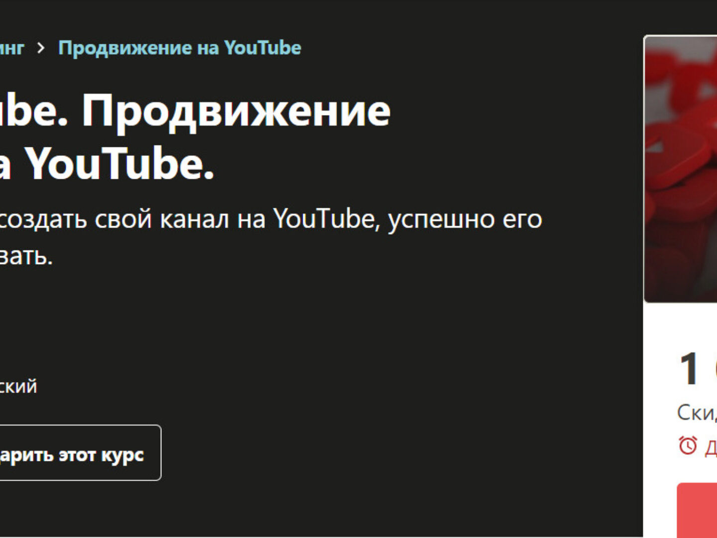 Почему курс «Курс YouTube. Продвижение YouTube. Раскрутка YouTube» стоит всего 1320 ₽?