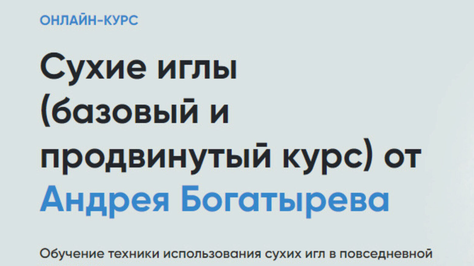 Андрей Богатырев «Сухие иглы базовый и продвинутый курс 2023» слив скачать