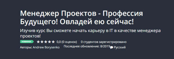 Андрей Борысенко «Менеджер проектов - профессия будущего» — Udemy слив скачать