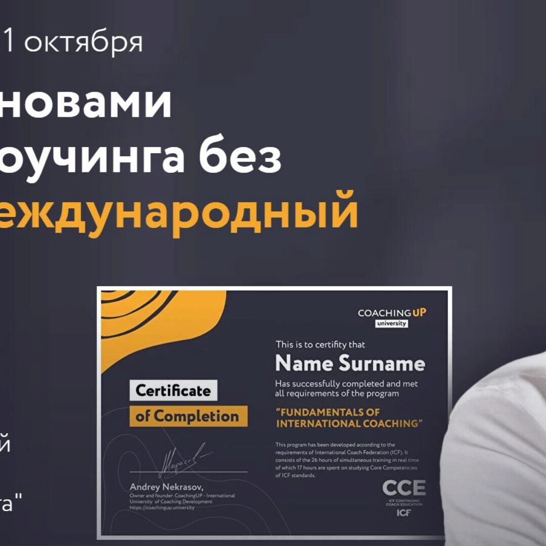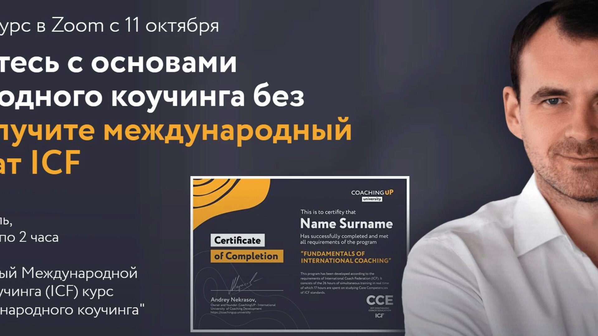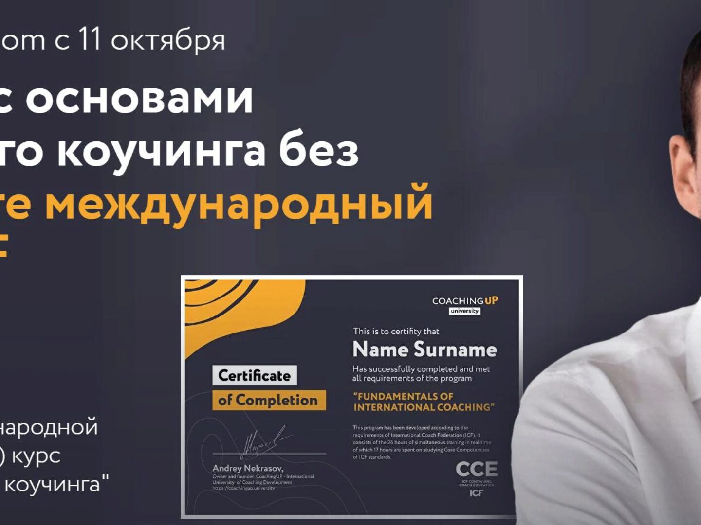 Наш курс имеет международную аккредитацию уровня CCE от крупнейшей в мире Международной федерации коучинга ICF.