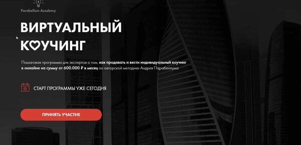 Пошаговая программа для экспертов о том, как продавать и вести индивидуальный коучинг в онлайне на сумму от 600.000 ₽ в месяц по авторской методике Андрея Парабеллума.