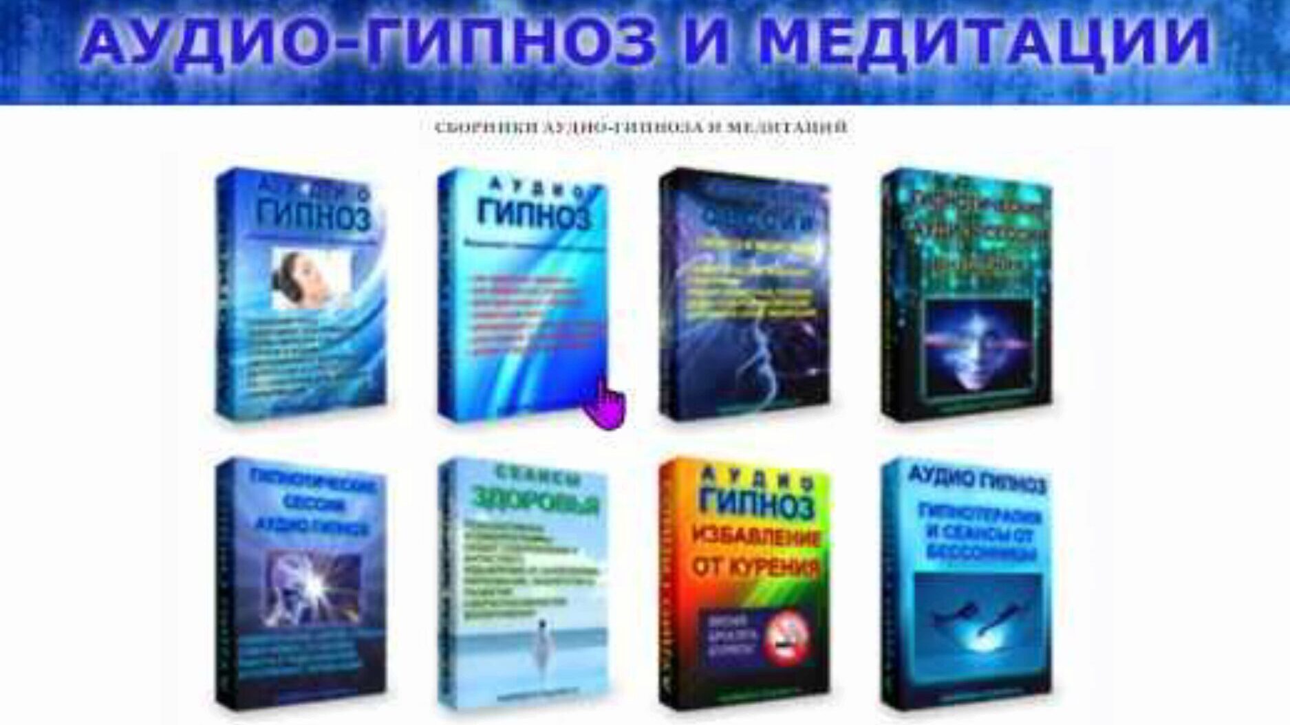 Воздействие сводится к прослушиванию сеансов и выполнению рекомендаций. 1. Спойлер: АУДИО ГИПНОЗ И МЕДИТАЦИИ. Сборник сеансов гипноза В сборнике 89 трека – сеансов аудио-гипноза,