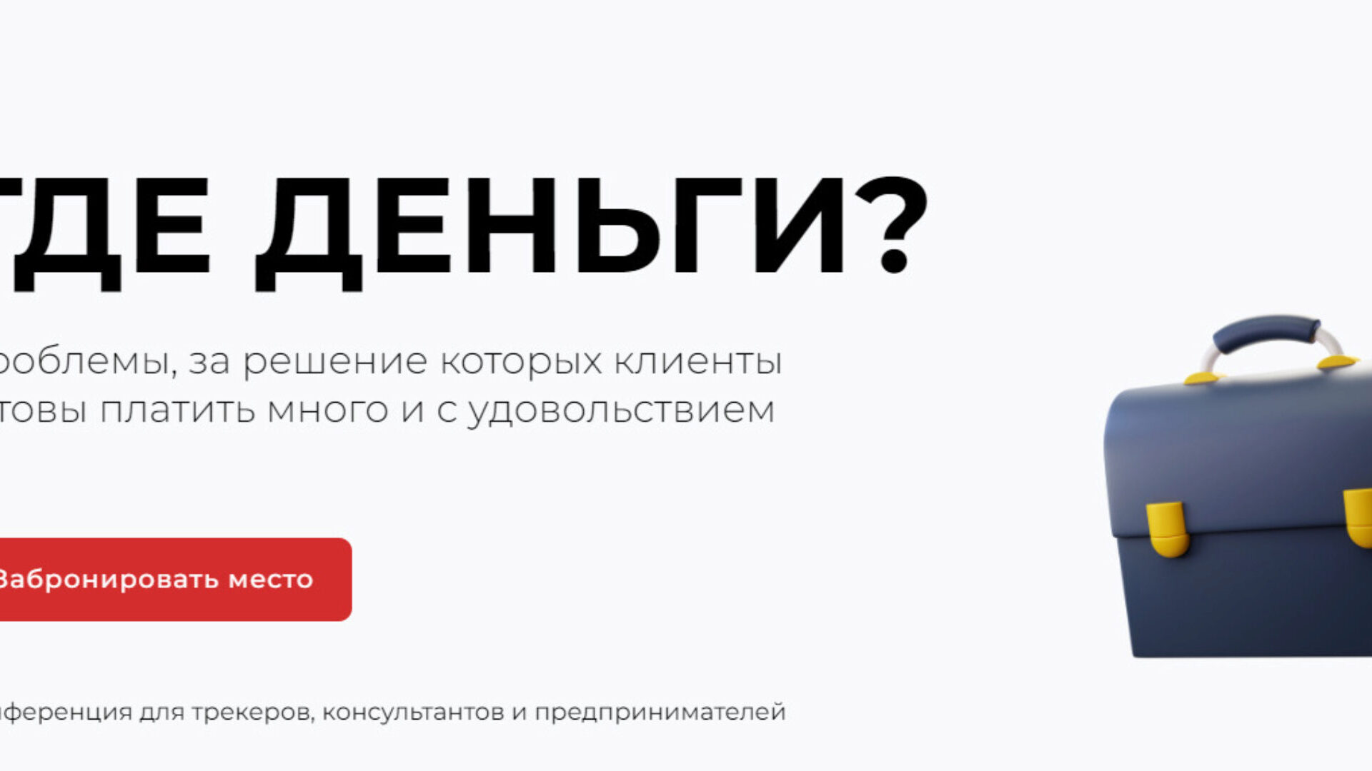 Первый шаг к большой проблеме, а значит и деньгам - диагностика. Именно ей и посвящена наша первая конференция. Мы пригласили тех, кто умеет делать её виртуозно и готов делиться опытом. Так, чтобы вы могли забрать себе лучшие подходы, фреймворки, механики. И использовать их в своей практике.