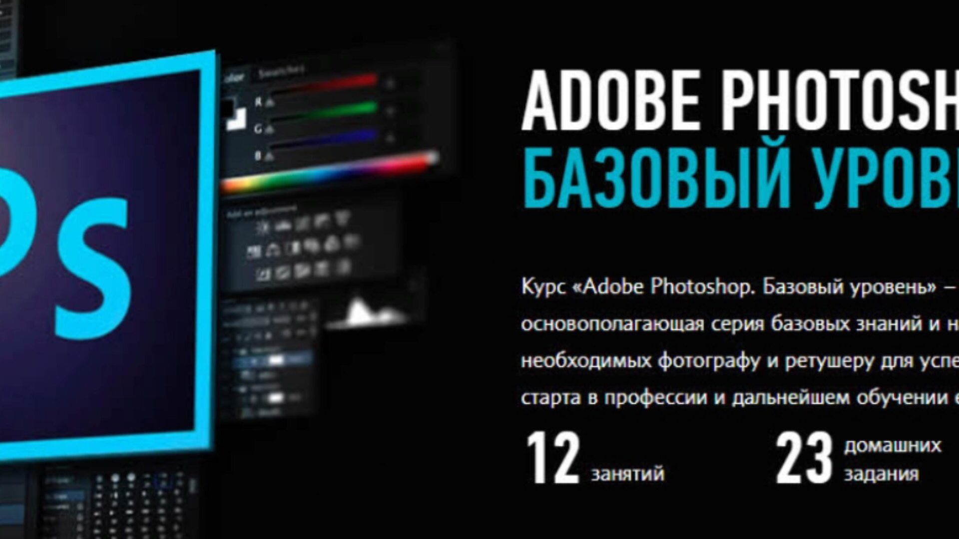 «Adobe Photoshop. Базовый уровень» — первый курс в серии по направлению Adobe Photoshop. Он закладывает фундамент знаний по обработке растровых изображений и изучает основной функционал программы. Полученная информация позволит вам ориентироваться в программе, понимать сущность растрового изображения и выполнять базовые операции с ним. На занятиях вы:
