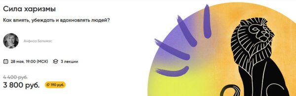 Анфиса Бельмас, автор онлайн курсов «Мастерская переговорщика» и «Мастерская оратора», расскажет обо всех преимуществах харизматичного человека и даст практические советы по развитию собственного обаяния. Вы узнаете, как перестать бояться быть заметным и научитесь управлять стилем харизматичного поведения, подходящим именно вам.
