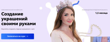Надоело сидеть в офисе? Хочется бросить все и заняться творчеством? На этом курсе вы научитесь всем необходимым техникам: сделаете браслет, брошь и корону. Вдохновитесь историей автора и станете настоящим дизайнером украшений.