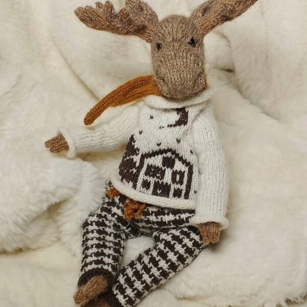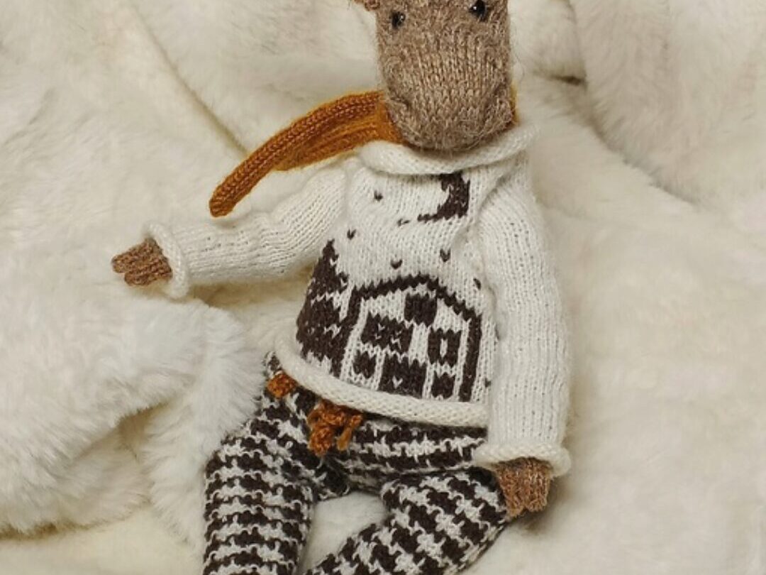 Включает в себя подробное описание вязания лосика с пошаговые фотографиями.