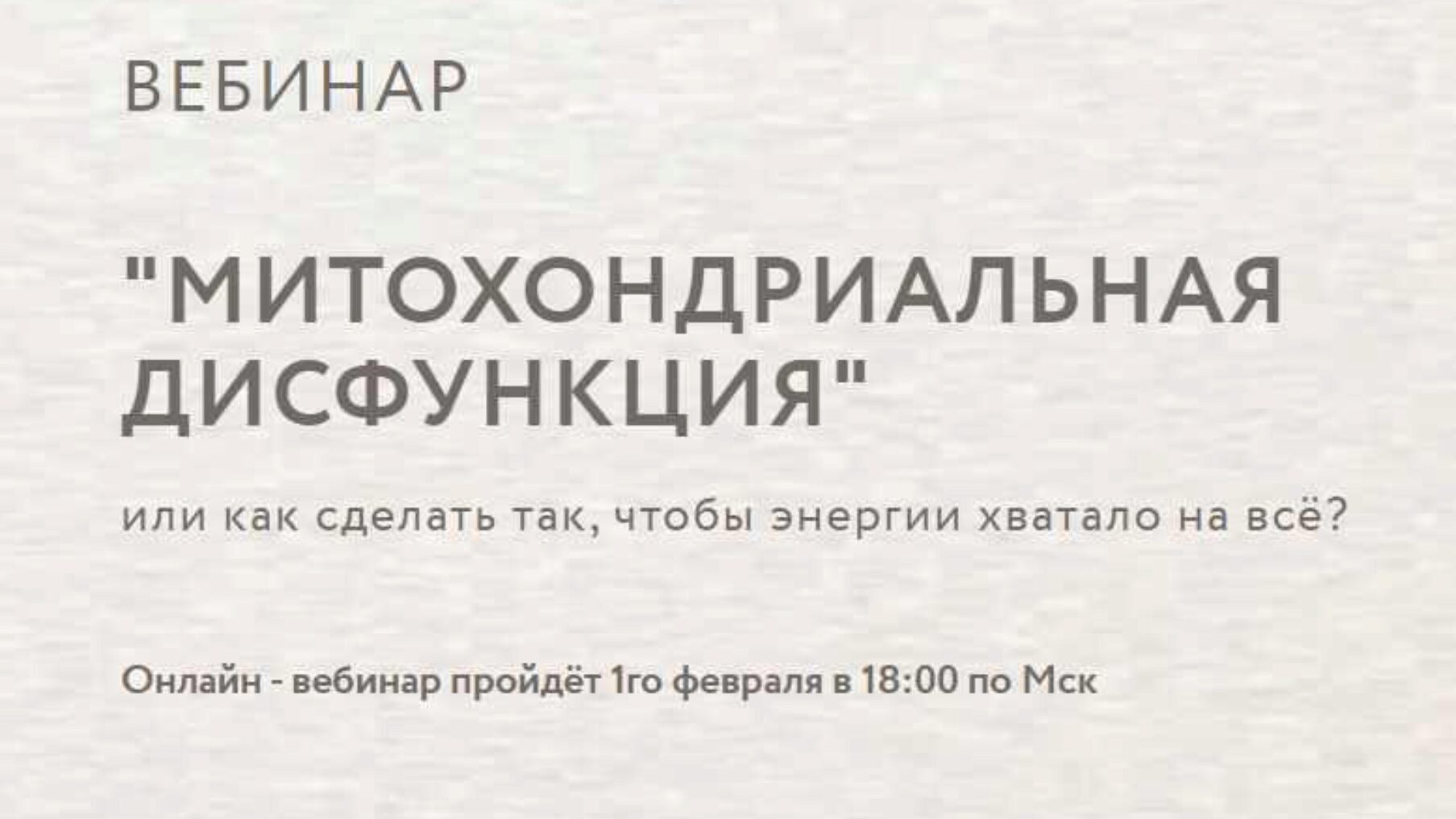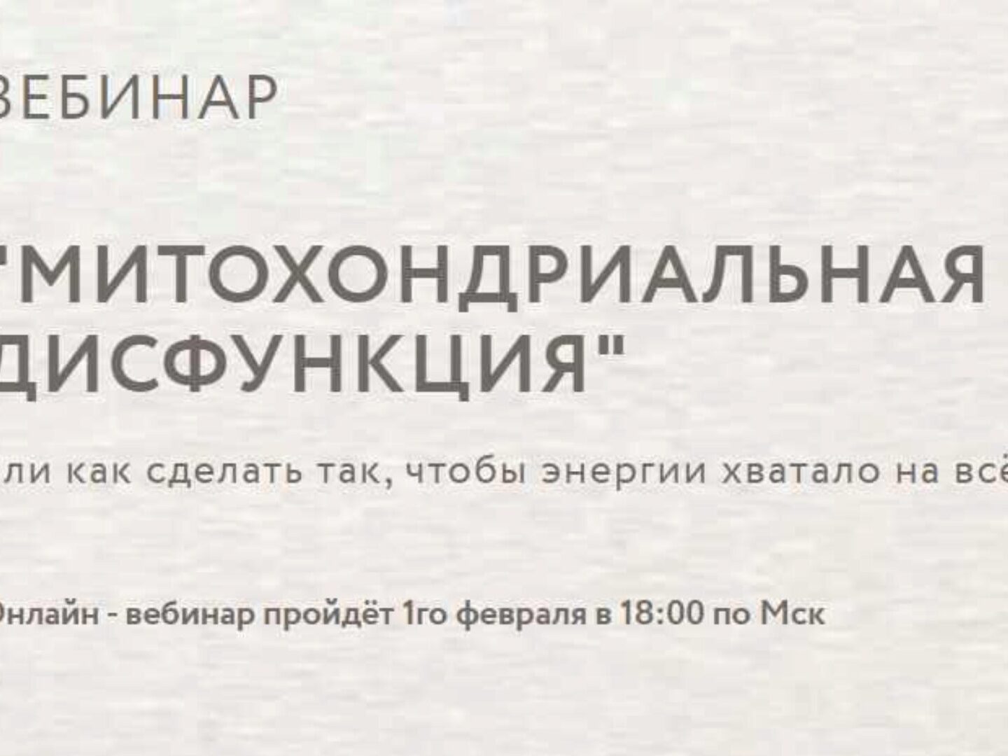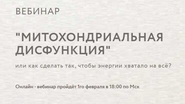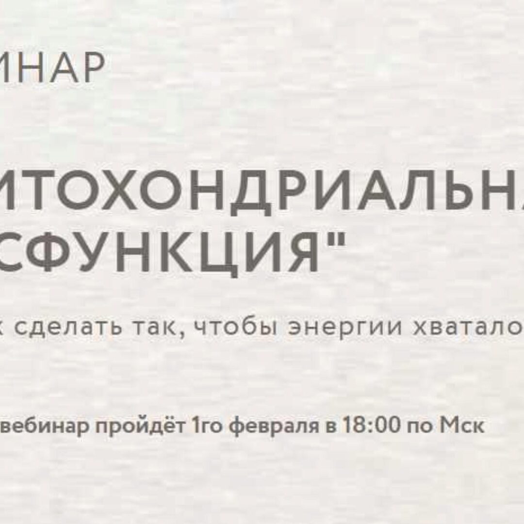 На своем вебинаре о митохондриальной дисфункции я научу вас работать со своим организмом так, чтобы ваши митохондрии начали работать на полную мощь и уже через неделю вы смогли жить свою лучшую жизнь.