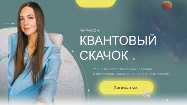 Дата: 25-31 декабря По традиции в предверии Нового года Марина проведёт свой легендарный трансформационный марафон «Квантовый скачок». Надоело ползти к своему светлому будущему? Что если настало время совершить космический рывок? Готовы?! Тогда до встречи на марафоне!