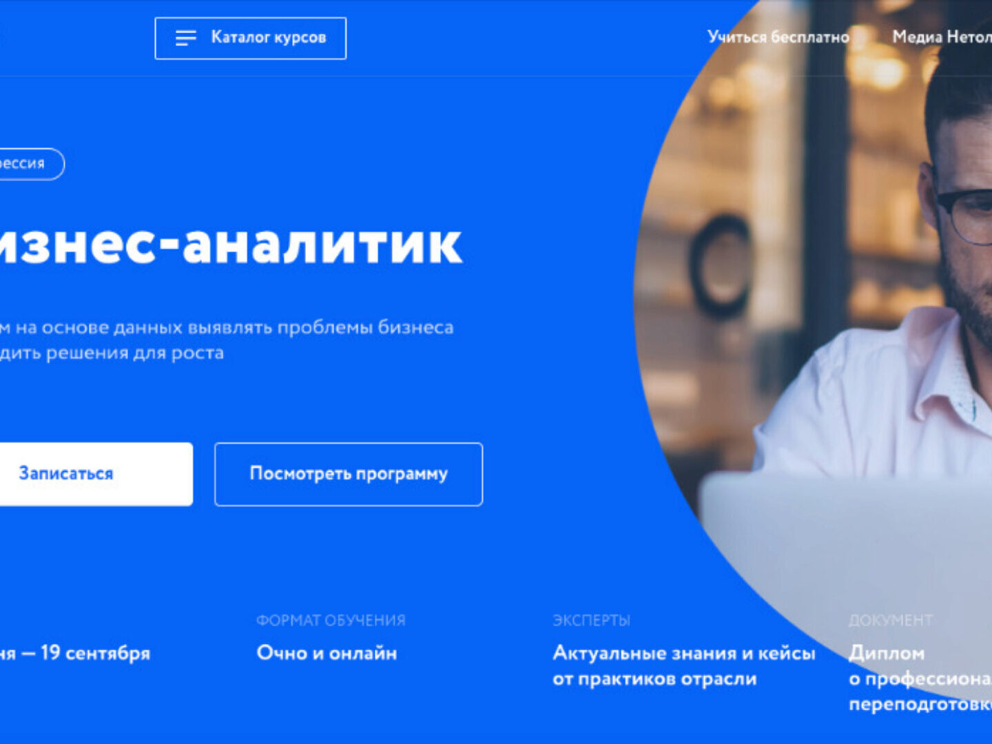 Освоите с нуля сразу две профессии ― системного и бизнес-аналитика. Получите всё для старта карьеры: универсальные навыки, практический опыт и сильное портфолио из 7 проектов. Освойте системную и бизнес-аналитику с нуля и получите востребованную профессию Бизнес-аналитик выявляет и оценивает
