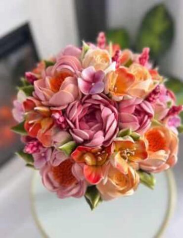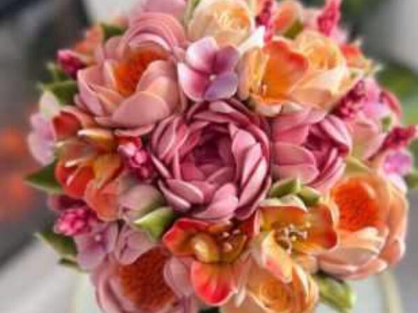 «Букет ассорти»: Обзор нужного для создания цветов инвентаря Обзор красителей Приготовление зефирной массы и рецепт зефира Отсадка пионов с серединкой из тычинок, бутоны Отсадка пионов, состоящих только из лепестков, бутоны Отсадка роз и бутоны Отсадка гортензий и отдельные цветочки Отсадка