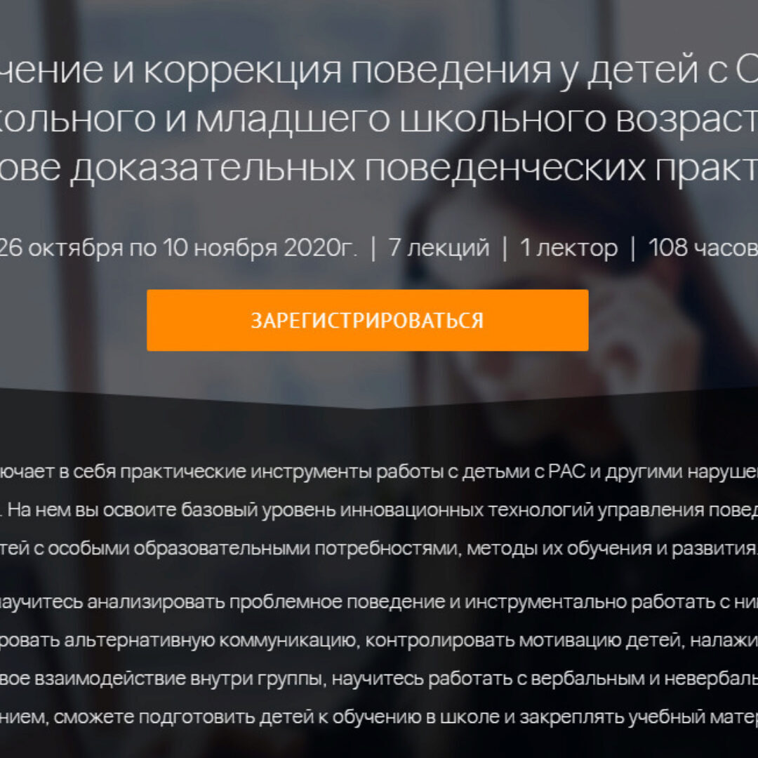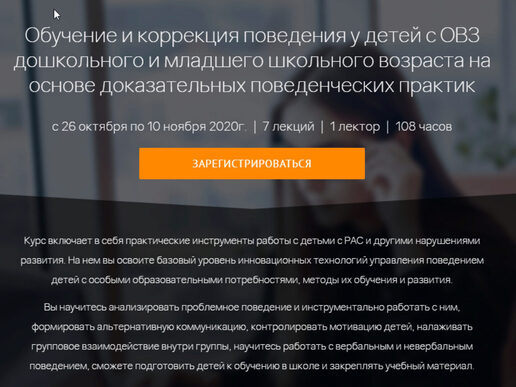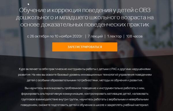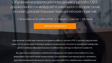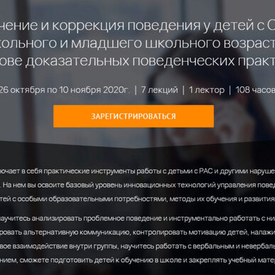 Курс включает в себя практические инструменты работы с детьми с РАС и другими нарушениями развития. На нем вы освоите базовый уровень инновационных технологий управления поведением детей с особыми образовательными потребностями, методы их обучения и развития.