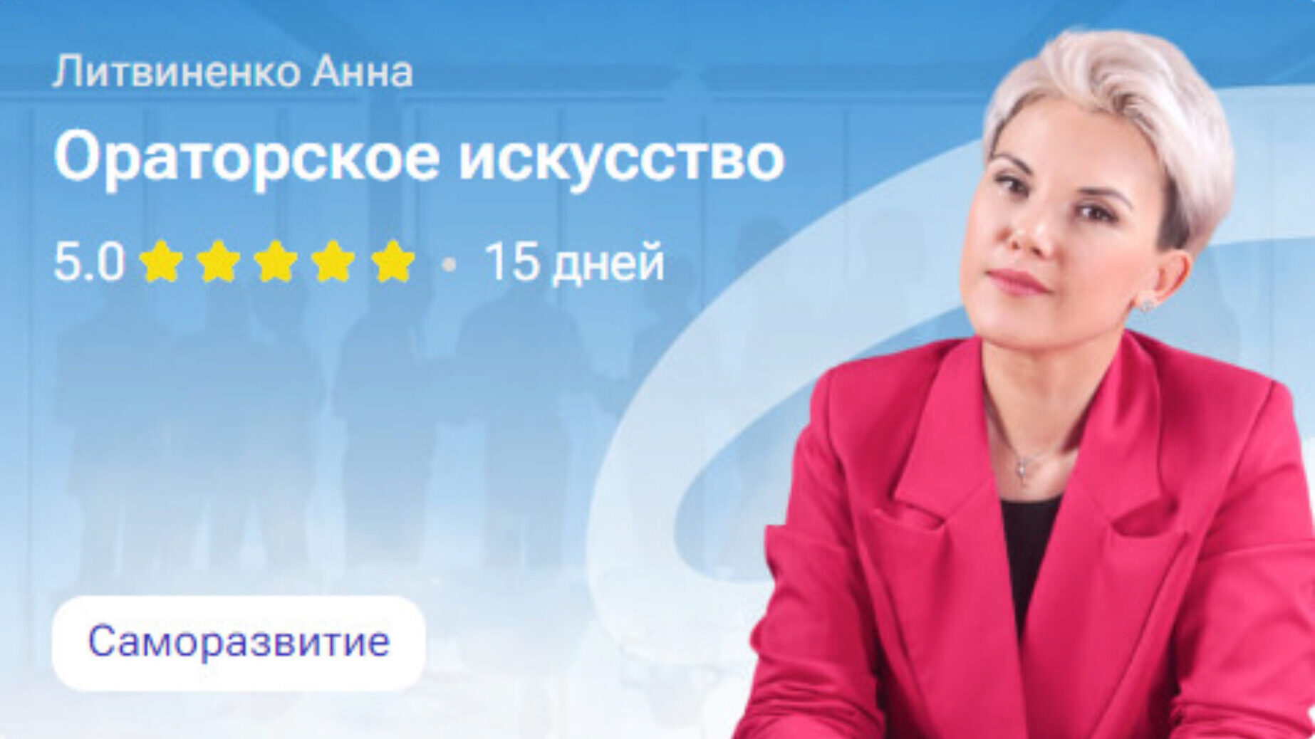 Курс по ораторскому искусству Анны Литвиненко поможет вам раскрыть потенциал и уверенно выступать перед любой аудиторией!