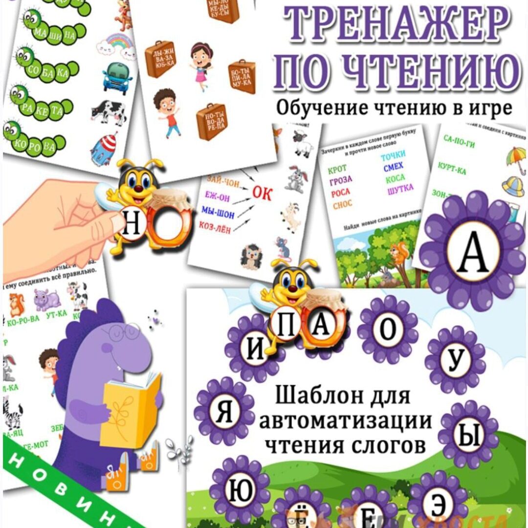 Комплект заданий тренажер по чтению - это материал для тех, кто начинает свои шаги в захватывающий мир самостоятельного чтения! Мечтаете научить малыша читать, используя новые и популярные методики? Удобный и веселый тренажёр для автоматизации чтения прямых слогов поможет в этом! Читать слоги с высокой скоростью вместе с пчелкой очень весело и эффективно! А ещё множество заданий, с помощью которых малыш не просто научится читать, а будет делать это с удовольствием!