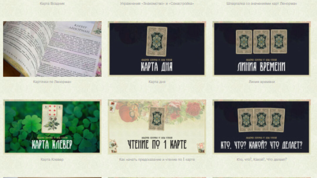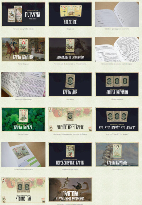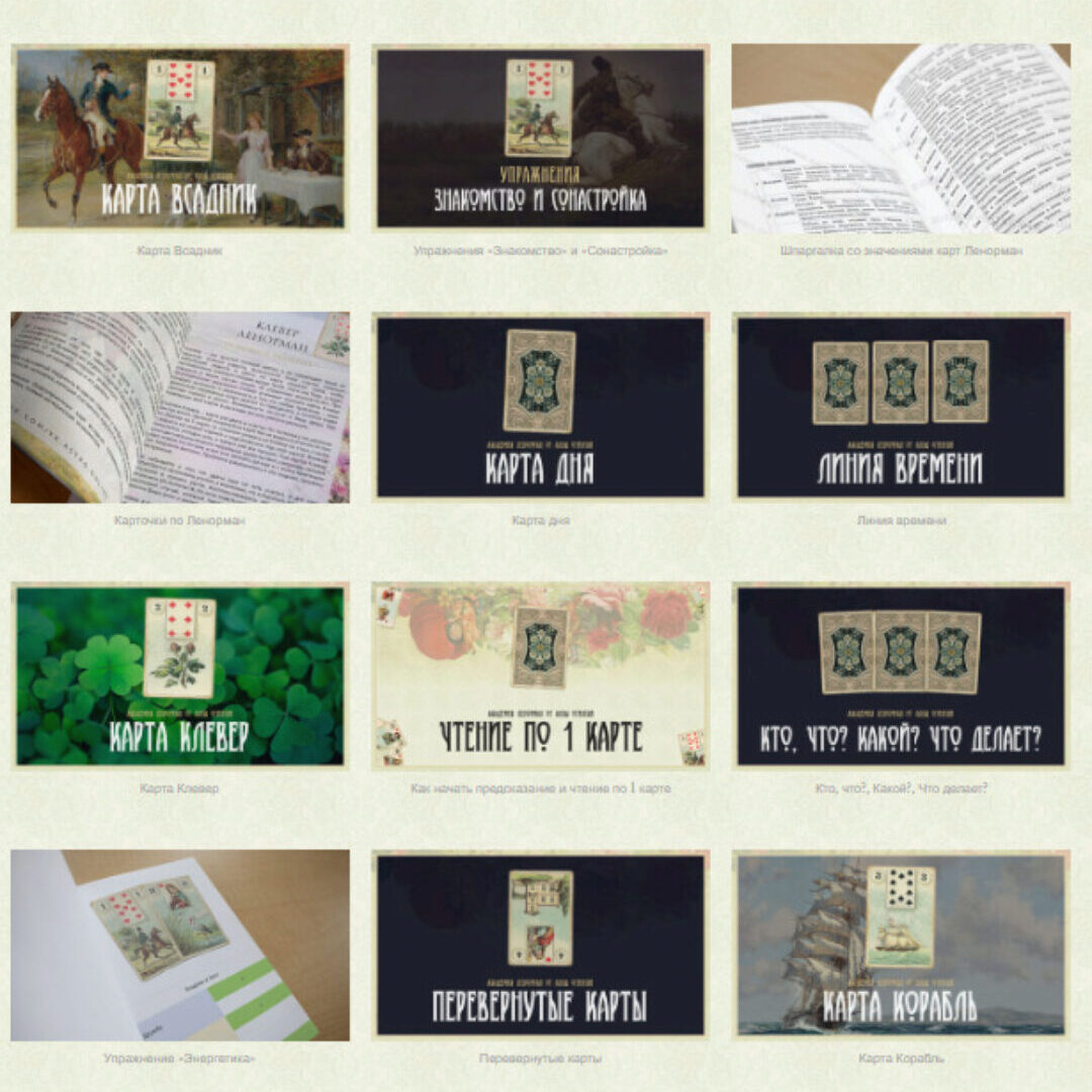 Полное обучение на Ленорман 12 курсов В программу входят 12 курсов и 350 глубоких и легких для усвоения уроков. Начать можно в любое время. Сразу после оплаты Вы получаете доступ к заказанным видео урокам. Эта программа разработана для тех кто начинает с нуля и желает достичь уровня мастера. Вы