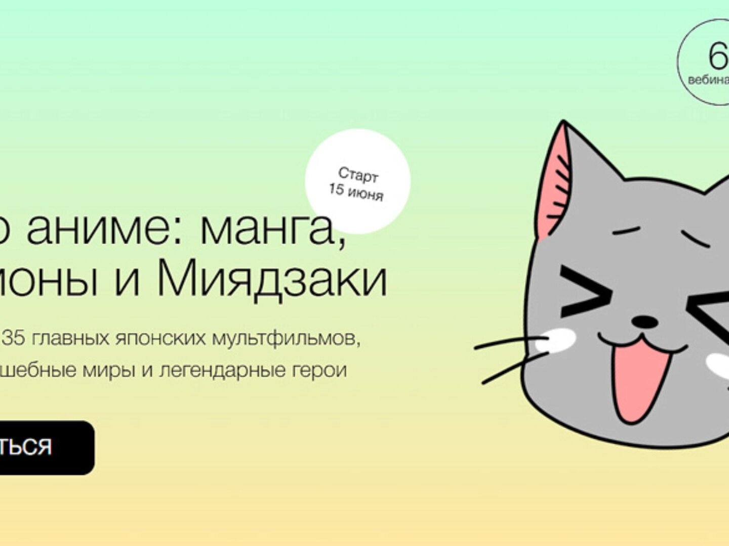 Попробуем разобраться за 6 занятий: мы погрузимся в мир аниме, составим список картин для просмотра и найдём любимых героев. А ещё поговорим о культурных особенностях Японии и узнаем неочевидные факты, которые помогут посмотреть на аниме с новых ракурсов. За 6 занятий изучим знаковые сериалы и фильмы, познакомимся с жанрами и составим полноценное представление об аниме.