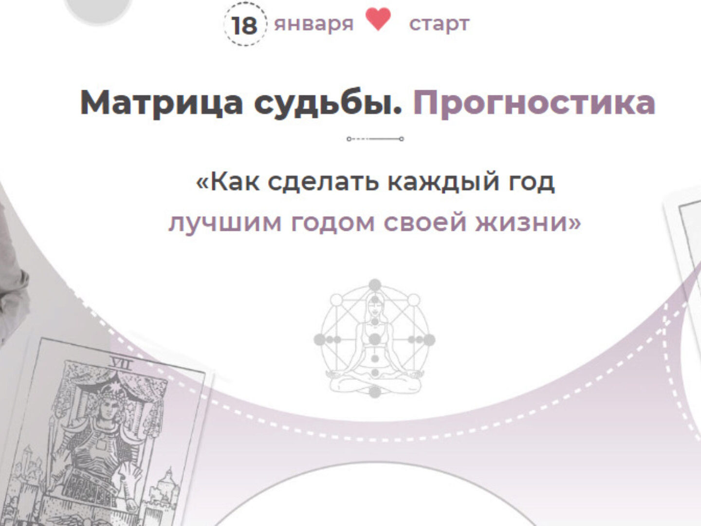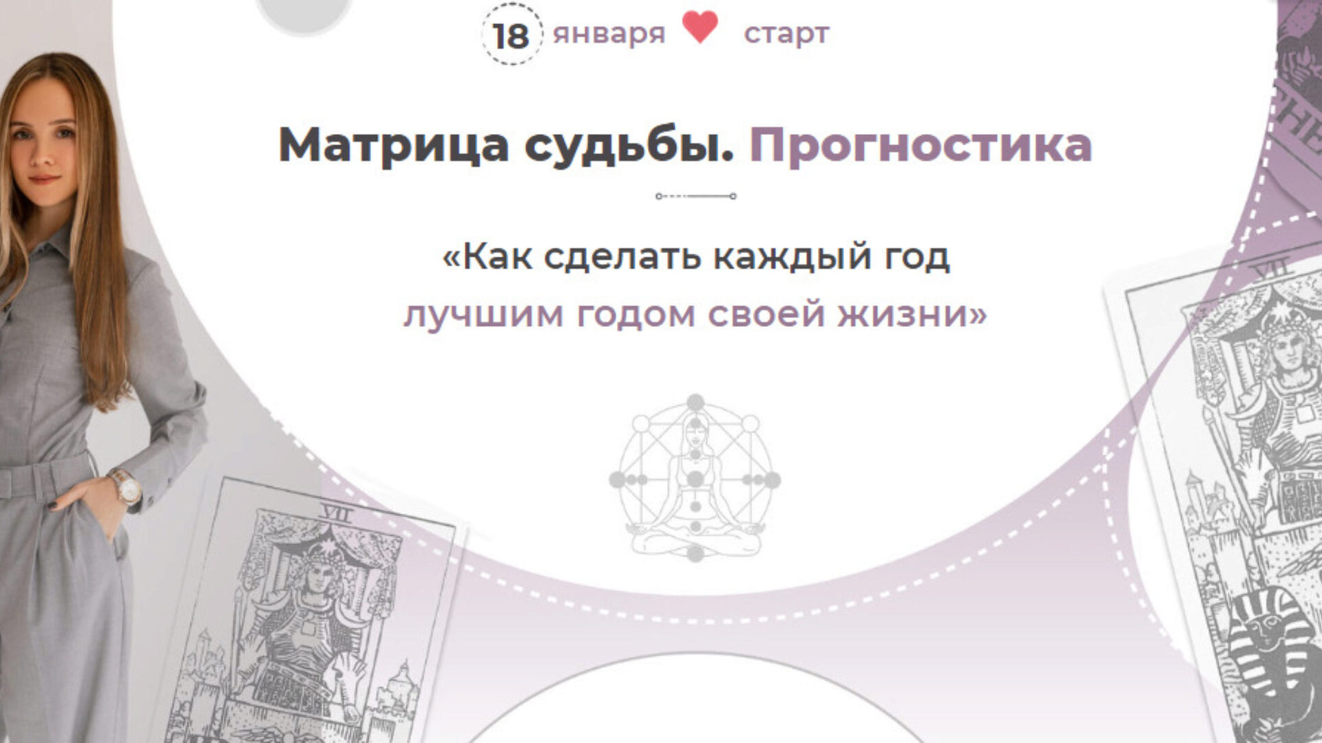 Начни проживать свою жизнь и зарабатывать на любимом деле из любой точки мира. Матрица судьбы. Система самопознания, которая базируется на знаниях о 22 энергиях мироздания, нумерологических расчетах и знаниях о чакрах. Это очень простой, но в то же время невероятно глубокий метод, который даёт